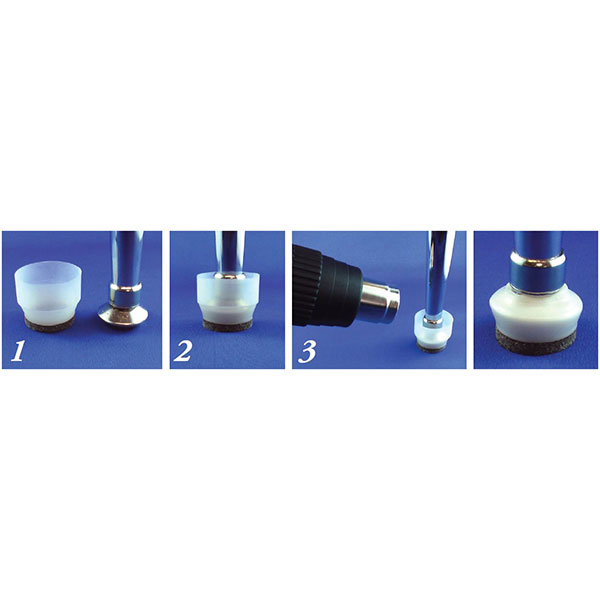 For classroom chairs and desk with high angle swivel footing- Ultimate 6328 heat shrink, form-fitting 1-1/4 inch Flexi-Felt chair glide with beige felt pad is the perfect solution. The ultimate classroom floor protector that last longer and works better than tennis balls and won't come off the classroom chairs. Kids will not push them off with their hands or feet. When you heat shrink FlexiFelt 6328 chair leg protector to the feet of a classroom chair, they will stay on until you purposefully cut them off. Watch videos about this item in a 1877Floorguy YouTube Playlist.