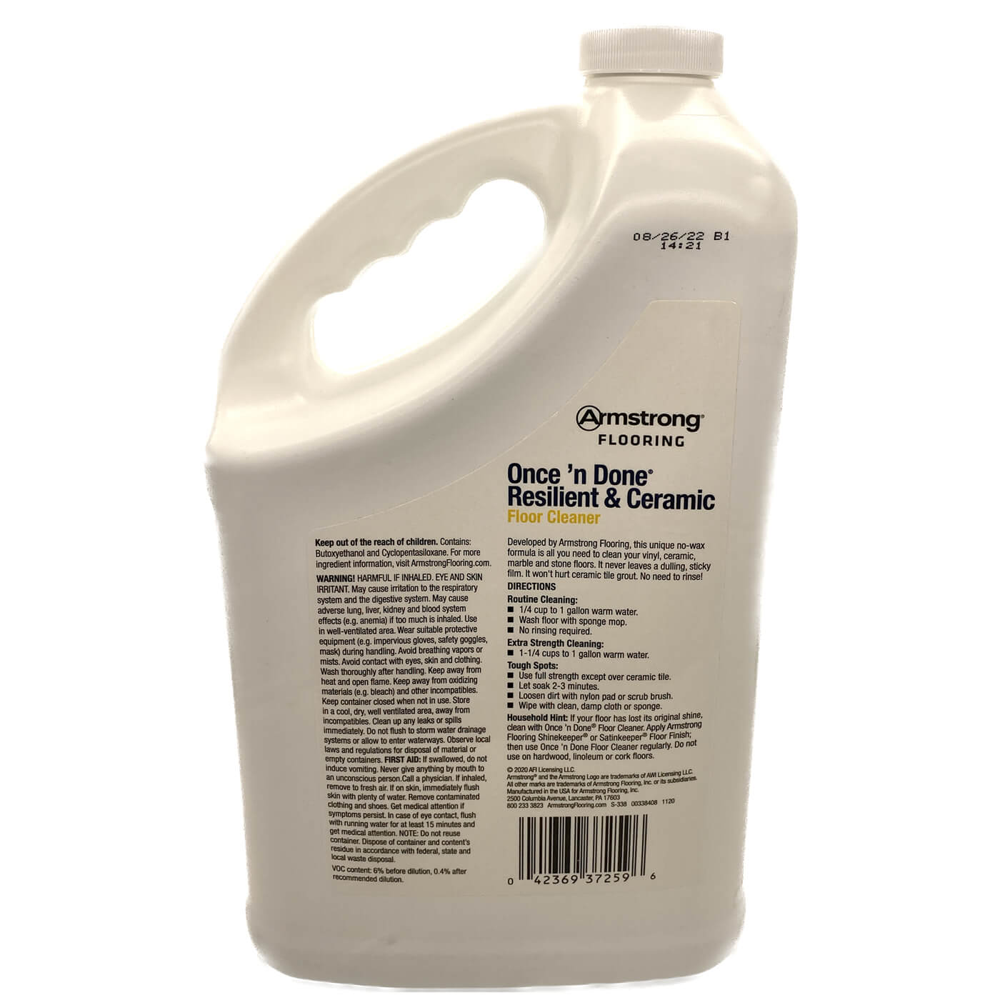 Clean your Armstrong vinyl flooring with Armstrong Once 'n Done No-Rinse Floor Cleaner CONCENTRATE in a 1-Gallon size (S-338). This no-rinse required cleaner mixes with water for economical use from the 128-Ounce (1-Gallon) bottle. Clean resilient & ceramic tile Floors by Armstrong including sheet vinyl, vinyl tile and luxury vinyl floors such as LVT and LVP. Safe for cleaning ceramic tile grout.